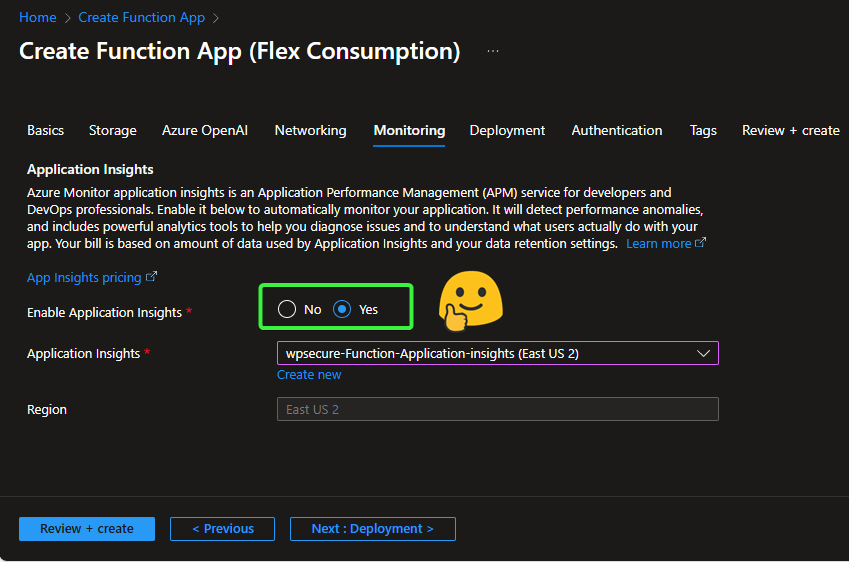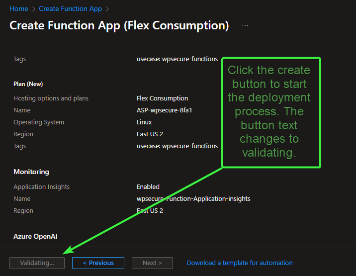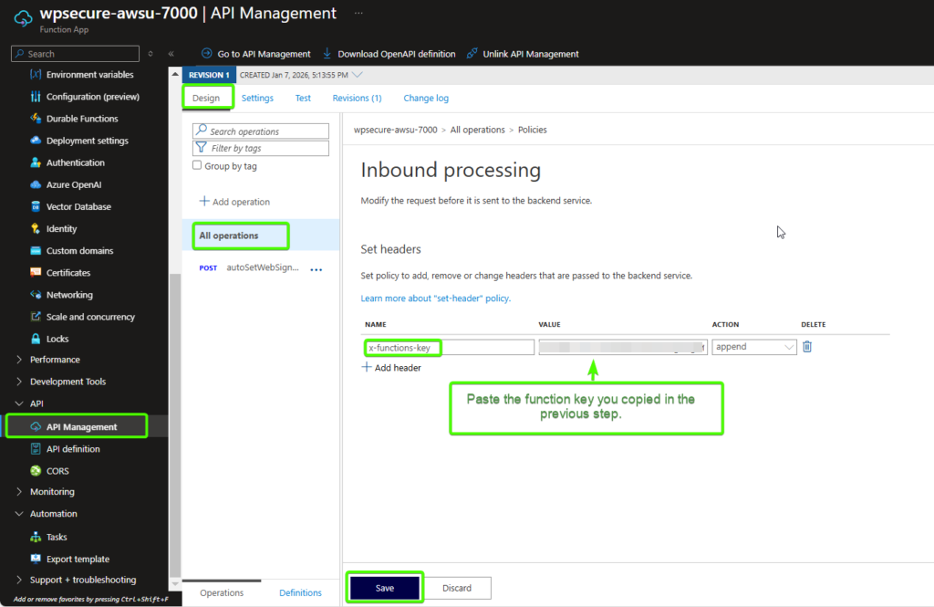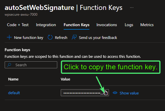 For consistency, use the same number across all other WPSecure-related Azure Functions that you configure.