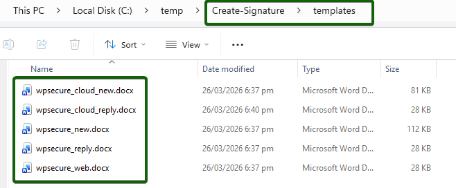 2) Export specific 'wpsecure_*.docx' files found in .\templates\ directly into .\signatures\