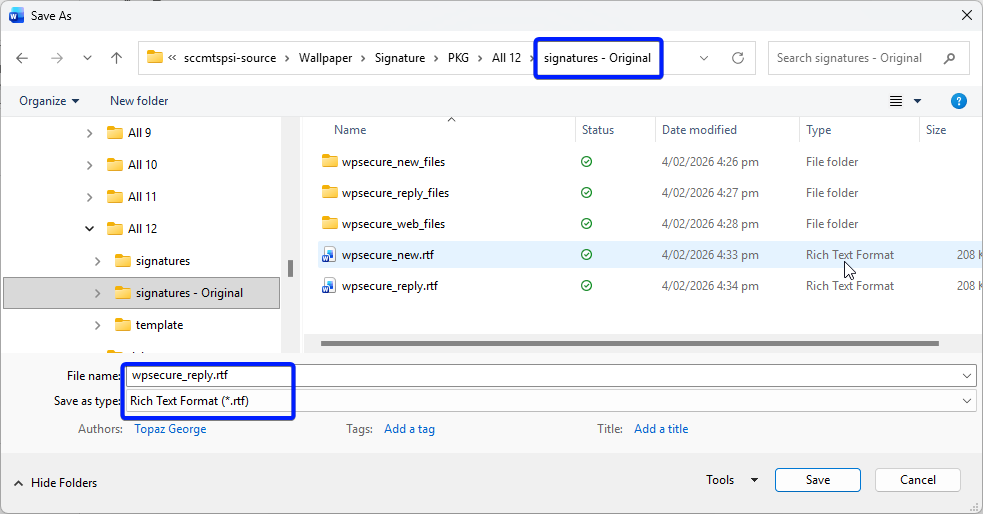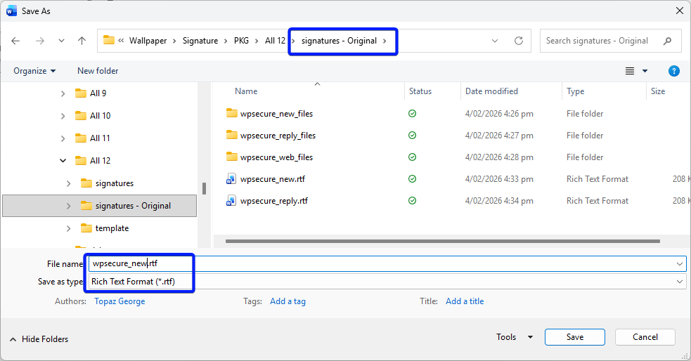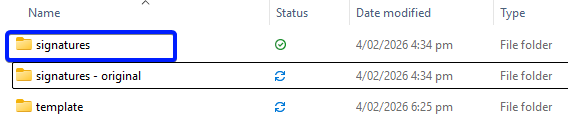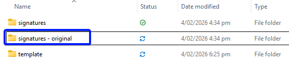 Next, create a new folder named “Signature – Original” in a different location from where your Word DOCX templates are stored. This folder will hold the original versions of your processed signature files.