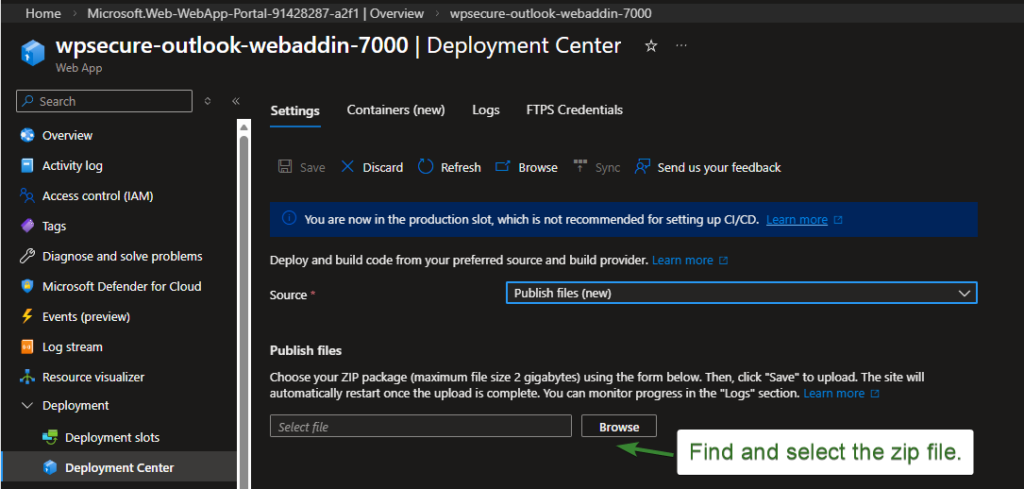 Let’s pause any further work on the Azure Web App and proceed to create the Entra ID app registration and Azure Blob storage to gather the required information. Once that is complete, we will return and continue with Part B of the Azure Web App configuration process.