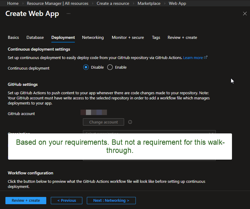 You can go through the wizard, but for the purposes of this article, we will click Review + create.