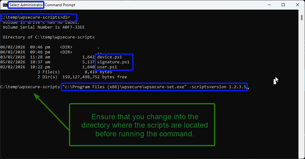 "c:\Program Files (x86)\wpsecure\wpsecure-set.exe" -scriptsversion 1.2.3.5