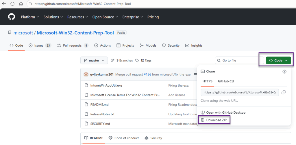 The ‘Microsoft Win32 Content Prep Tool’ can be downloaded from Microsoft’s GitHub repository. We have provided the two options below.